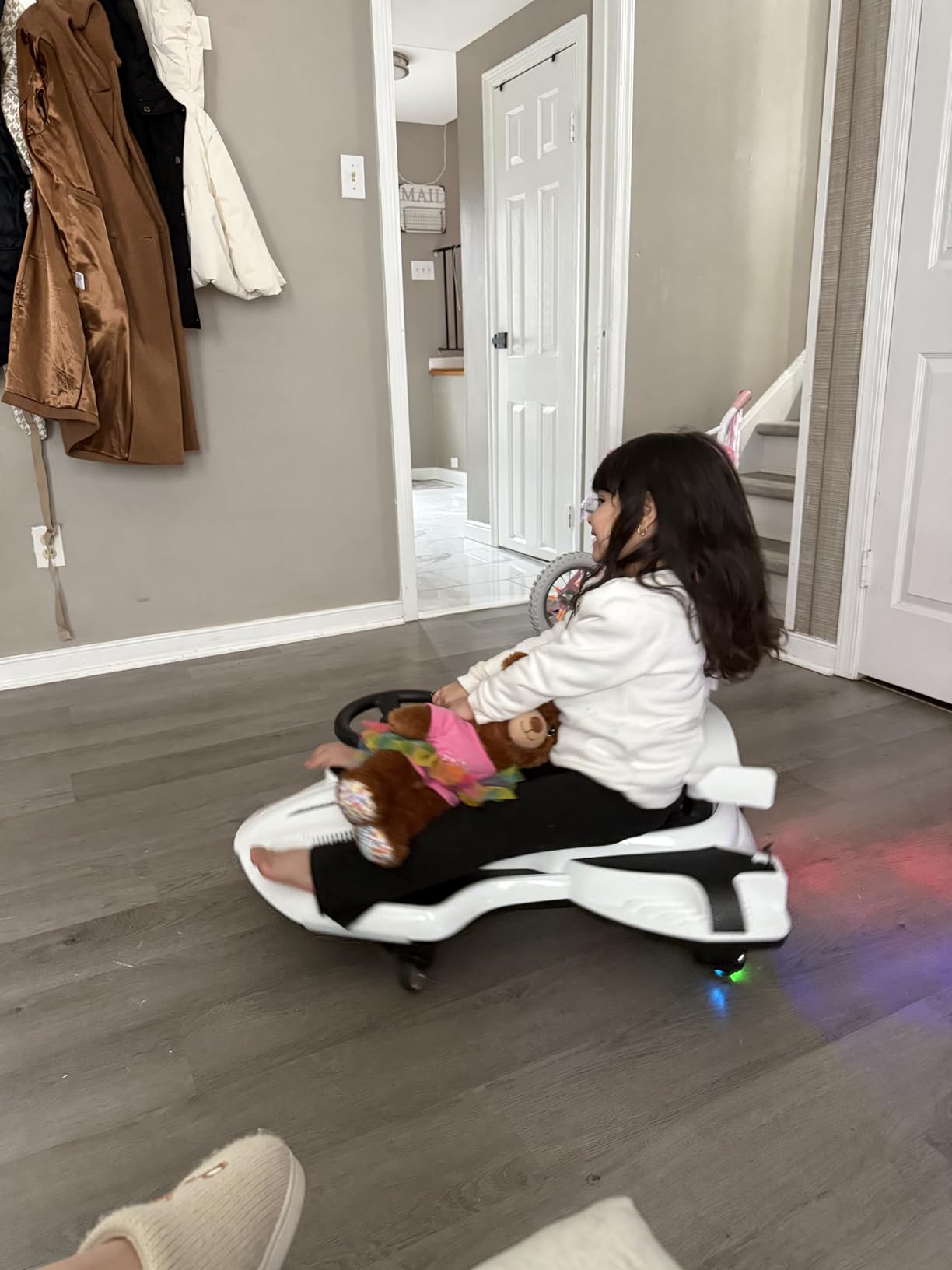 Combines Wiggle Car and Drift Kart with front pedal. Rear wheels rotate 360° to prevent rollover, ensuring safe racing fun.